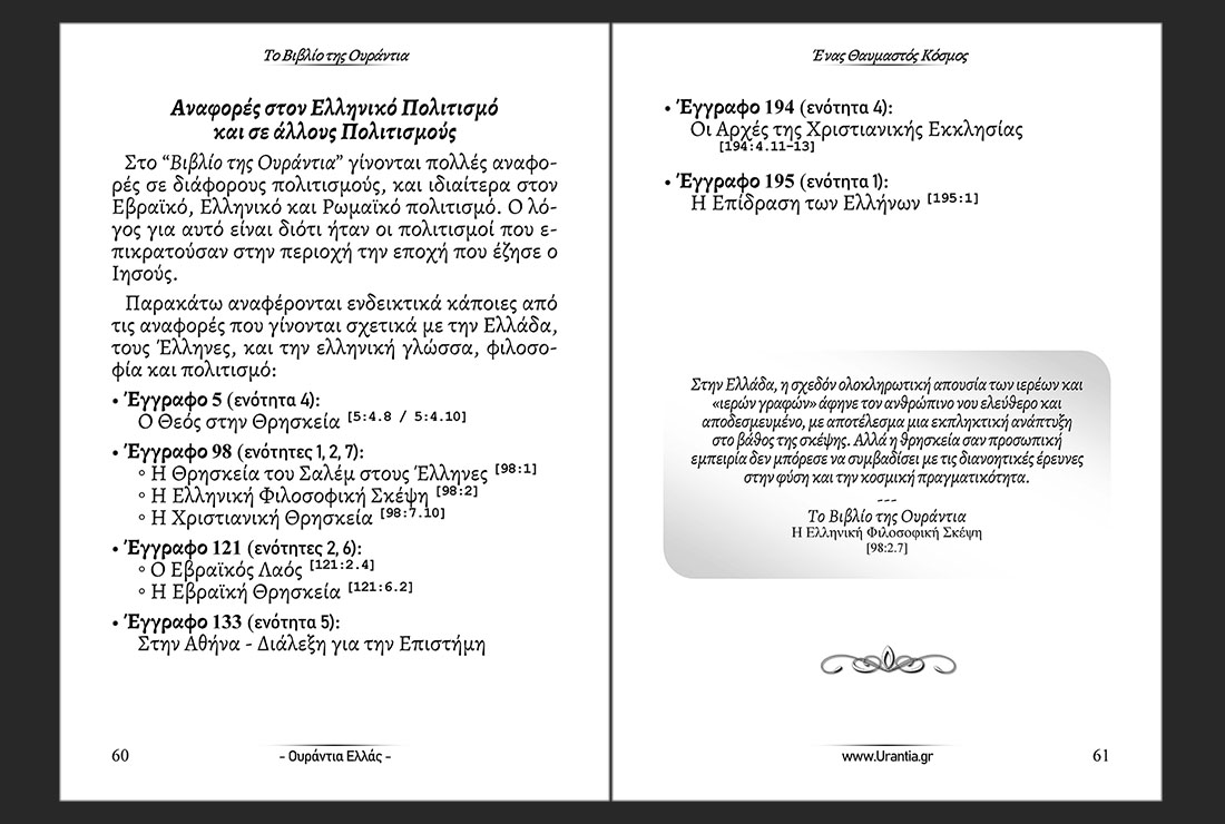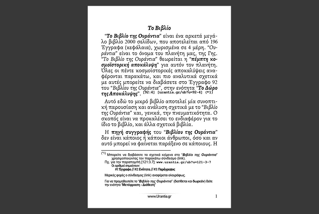 Σε αυτό το μικρό βιβλίο παρουσιάζονται θέματα σχετικά με το “Βιβλίο της Ουράντια” και, γενικά, την πνευματικότητα. Ο σκοπός του είναι να προκαλέσει το ενδιαφέρον για το ίδιο το βιβλίο, και άλλα σχετικά βιβλία.